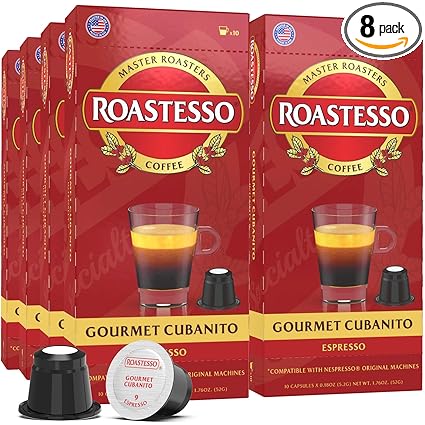 4.6 out of 5 stars. Roastesso coffee, gourmet cubanito, nespresso compatible capsules for originalline machines, dark roast espresso ristretto pods, intensity 9, single serve cafecito de cuba (40 count). 0.4 hurricane coffee cuba 1910 coffee, single serve cups for keurig k cup brewers, 24count. Same great performance at a budget price. Nespresso machine lattisima + passion red en520r.